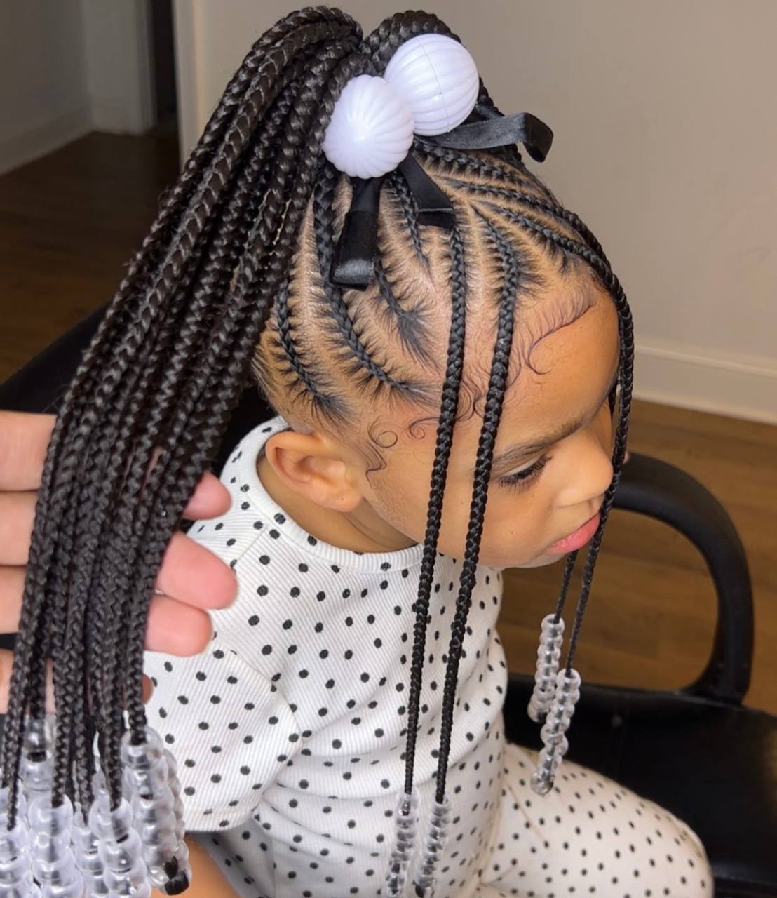 • Cornrows with Beads: Classic straight-back cornrows adorned with colorful beads.